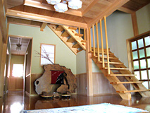 柱・梁・横架材、垂木などの木材も通常よりも太い材を使用します。土壁、貫工法、差し鴨居による匠の技による伝統建築の工法です。仕口、継ぎ手にも伝統技術の技を駆使しています。外観は腕木を出して船外桁を通し、軒の出を深くし、日差しを遮り、夏を涼しく過ごします。 内観は造作材もムク材をふんだんに使用し、玄関ホール、座敷も格式の高い仕上げになります。